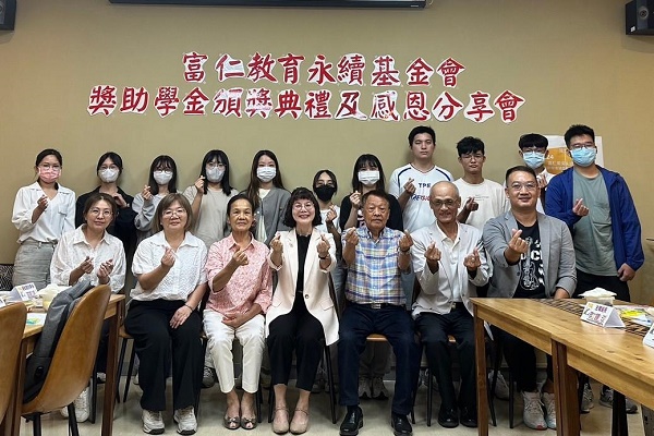 該場「富仁教育永續基金會獎助學金頒獎暨感恩分享典禮」由學務處主辦,高雄大學校長陳月端、學務長蔡幸致、生輔組組長李曉玟與會,董事長鄭富仁及董事陪同出席。