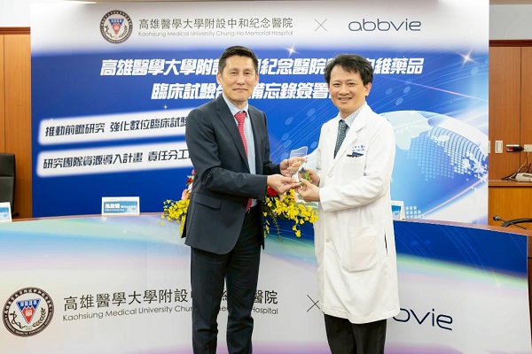 【記者吉雄世/高雄報導】為加速臨床試驗啟動與執行效率、提升研究品質並強化國際競爭力,高雄醫學大學附設中和紀念醫院(以下簡稱高醫)於5月29日與全球知名生技公司艾伯維藥品正式簽署臨床試驗合作備忘錄(MOU)。雙方透過「研究團隊資源導入計畫」進一步深化策略夥伴關係,打造高效率的臨床研究合作新典範。此次合作最具指標性的亮點,莫過於高醫於一項針對轉移性大腸直腸癌的臨床試驗中,在全世界多個研究中心啟動招募作業後,高醫率先招募到首位受試者,展現高醫臨床試驗團隊的卓越執行力與國際競爭優勢,更彰顯台灣在新藥研發全球布局中的關鍵角色。