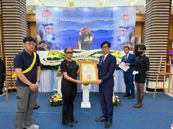 【記者吉雄世/高雄報導】被山友尊稱為「柴山英雄」、「活菩薩」的洪木生先生,畢生無私奉獻,三十年如一日揹水上山奉茶,使山友往來得以解渴歇息。洪先生日前辭世,享壽七十,9月]28日告別式,陳其邁市長親自出席並頒發褒揚狀,表彰其崇高義行,場面肅穆溫馨。