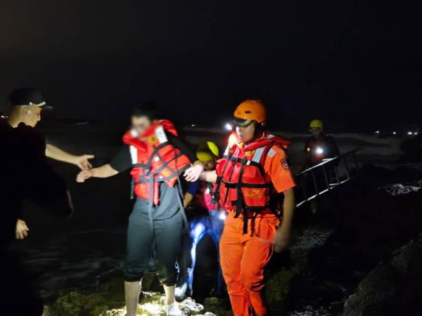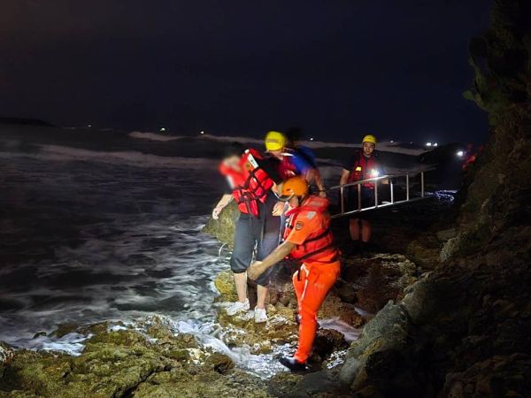 18時11分,該署現場人員評估以徒步礁岩區方式實施救援,續於18時23分將該民眾救援上岸。