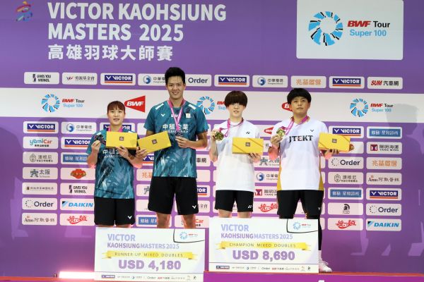 【記者吉雄世/高雄報導】「2025高雄羽球大師賽」9月28日於高雄巨蛋體育館火熱展開最終決賽!共吸引全球15個國家、287位各國菁英齊聚港都,角逐高雄第三屆Spuer100冠軍及獎金。經過6天的精彩絕倫的鏖戰,各組冠軍出爐,地主選手全力將男單金牌、混雙及男雙銀牌等共3面獎牌留在高雄。