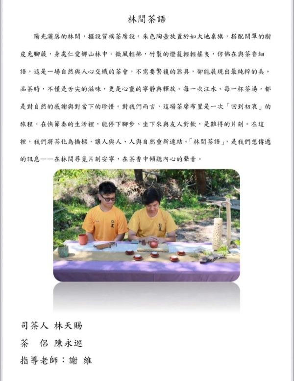 - 第二組 林間茶語(國立仁愛高級農業職業學校)林天賜、陳永巡