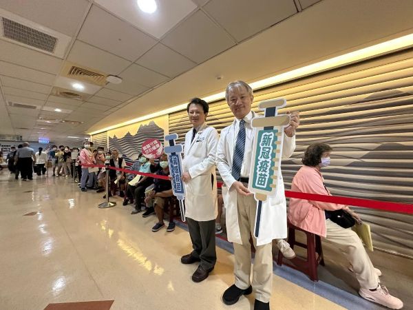 圖說3:114年公費流感和新冠疫苗今日開打,吸引許多民眾來院施打,高醫王照元院長(左)與林宗憲副院長(右)呼籲民眾施打公費流感和新冠疫苗雙疫苗,守護自己及家人健康。