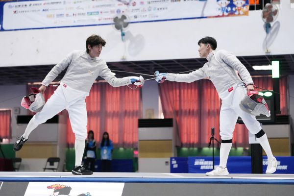 14. 高雄市擊劍代表隊男子組軍刀個人賽陳慧宗(左)獲得銀牌。