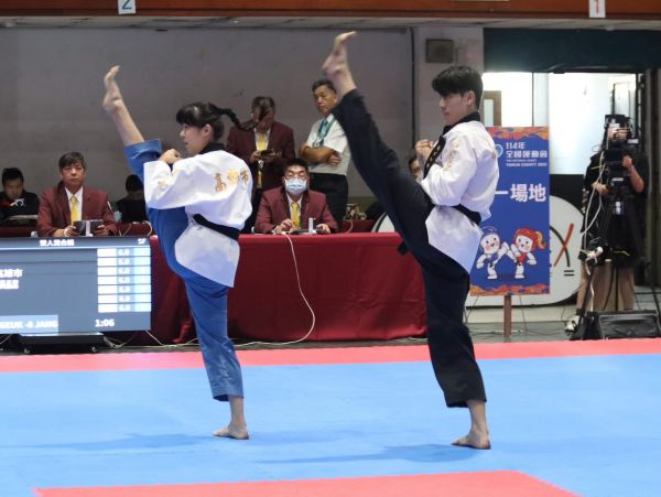 4. 高雄市跆拳道代表隊品勢混合組男女混雙賽李秉翰、黃品潔榮獲金牌。