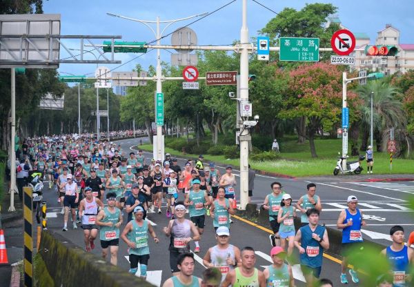 圖說四、五:長榮航空馬拉松跑者迎接久違的好天氣,在台北市賽道上享受比賽,挑戰自我。