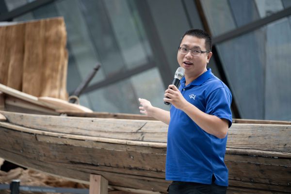 圖5擔綱修復重任的匠師楊秋煌先生說明修復舟船的心路歷程。