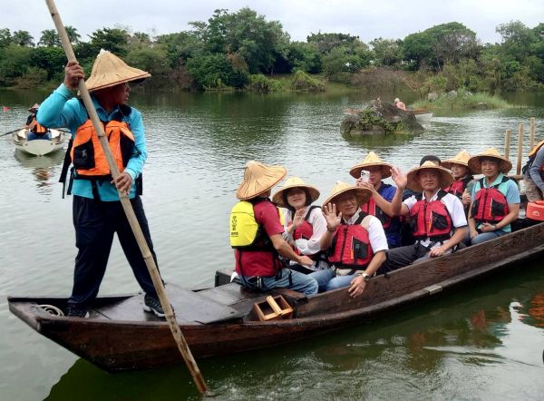 圖1海洋委員會支持宜蘭縣立蘭陽博物館修復傳統船舶今(26)日下水試航(第一排右1為林茂盛代理縣長、右2為林麗英處長)