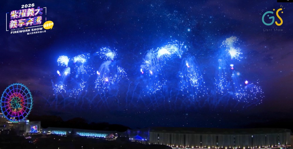 義大世界跨年煙火秀邁入第17年,2026年以『紫耀義大 義享奔騰』為主題,將新春馬年的奔騰氣勢與活力,化作最誠摯的新年祝福。今年,煙火設計突破以往,大膽創新,首波釋出三大亮點。首先登場的「流墨幻彩煙火」,白閃高亮煙火與日間彩煙的奇幻交織,在夜空中揮灑出一幅流動的畫卷,絢麗的七彩騰雲層層堆疊,猶如瑰麗的織錦從天而降,如夢似幻的神話級鉅作,絕對震撼全台!