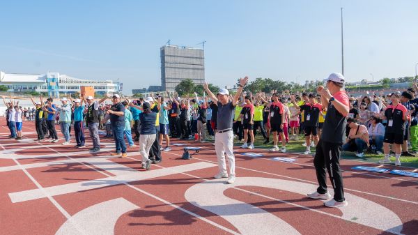 圖說2:現場上千名師生與來賓一同進行暖身操,跟著音樂節奏動起來,展現高雄人熱愛運動的精神。