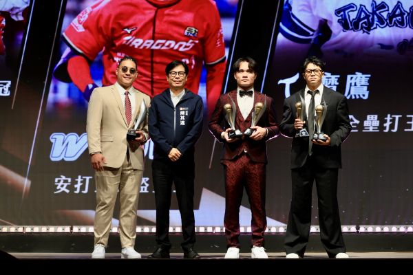 【記者吉雄世/高雄報導】2025中華職棒大聯盟11月5日於高雄萬豪酒店舉行頒獎典禮,市長陳其邁蒞臨頒發年度「打者」個人獎項,並勉勵得獎選手。陳市長感謝蔡其昌會長從開季辦桌誓師到頒獎典禮都選在高雄,無上光榮,帶領中華職棒不斷卓越與成長,內心十分感動,同時也感謝球員在每個季賽、每場比賽、每一顆球背後的辛勞努力。