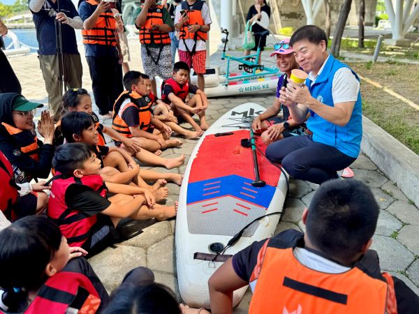 石慶豐局長指出,今年特別創新安排原鄉學童體驗,邀請茂林區多納國小、那瑪夏區那瑪夏國中及桃源區桃源國小,其中多納國小宋麒麟校長、桃源國小凃宗成校長,更親自帶隊參加,至愛河灣體驗海洋課程。專業教練全程指導立式划槳(SUP)、龍舟板及水上腳踏車等無動力水上活動。對多數第一次接觸大海的偏鄉孩子而言,能親眼望見港灣風光、親手操作水上設施,是難得又難忘的體驗。活動中並貼心準備在地飲品與知名速食餐點,讓學童在歡笑與驚喜中度過愉快的學習時光,山上的孩子與我們立下山盟海誓,相約明年再見。