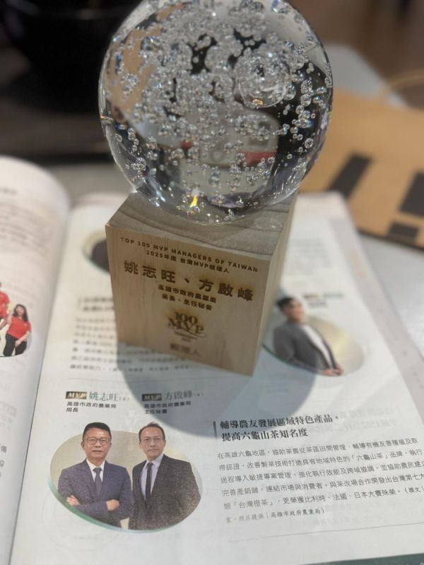 【記者吉雄世/高雄報導】高雄市政府農業局姚志旺局長與方啟峰主任秘書以「六龜山茶產業發展與行銷」專案,榮獲《2025年第18屆100MVP經理人》大獎,頒獎典禮(114)年11月28日在台北遠東香格里拉飯店盛大舉行,農業局突破傳統公部門運作模式,將「敏捷管理」導入農村再生與產業升級,使六龜原生山茶從八八風災後的重建、走向品牌化,再一路踏上國際競賽舞台,成功翻轉地方產業命運,成為最受矚目的公部門典範專案之一,本次典禮亦邀集產官學界代表共同出席,見證高雄市在農業治理與產業創新上的嶄新突破,展現公部門以系統化管理推動地方產業升級的能量。