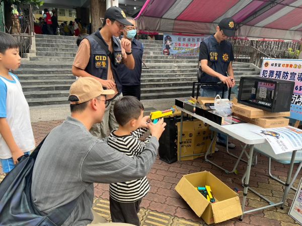 宣導攤位一開放便吸引許多師生圍觀,小朋友們手拿「ATM解除分期=一定是詐騙」、「網購低價商品莫貪心」等防詐手牌開心合影,現場洋溢孩子們的笑聲與活力。家長也趁機向刑警同仁詢問最新詐騙手法,從假投資、假客服到網購陷阱,互動十分熱絡。現場並展示常見毒品偽裝包裝,提醒孩子與家長提高警覺、遠離風險。