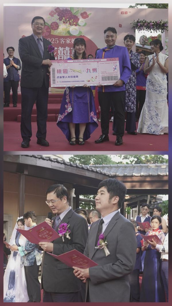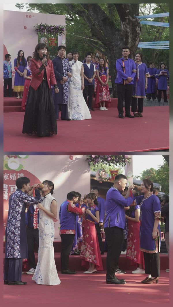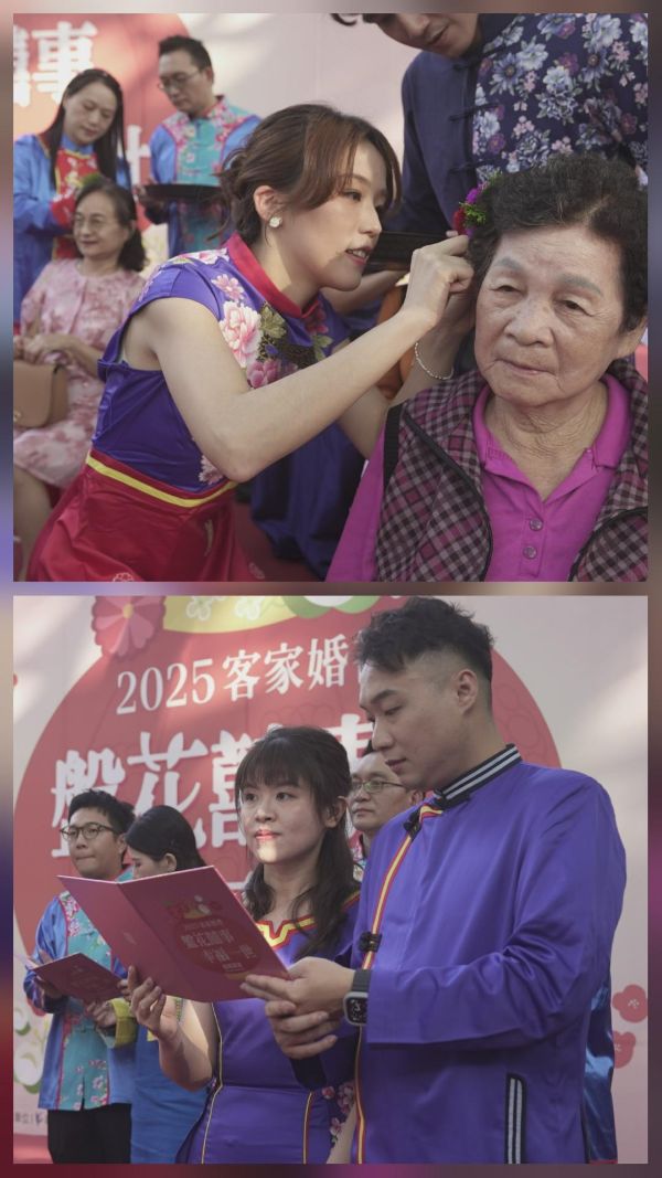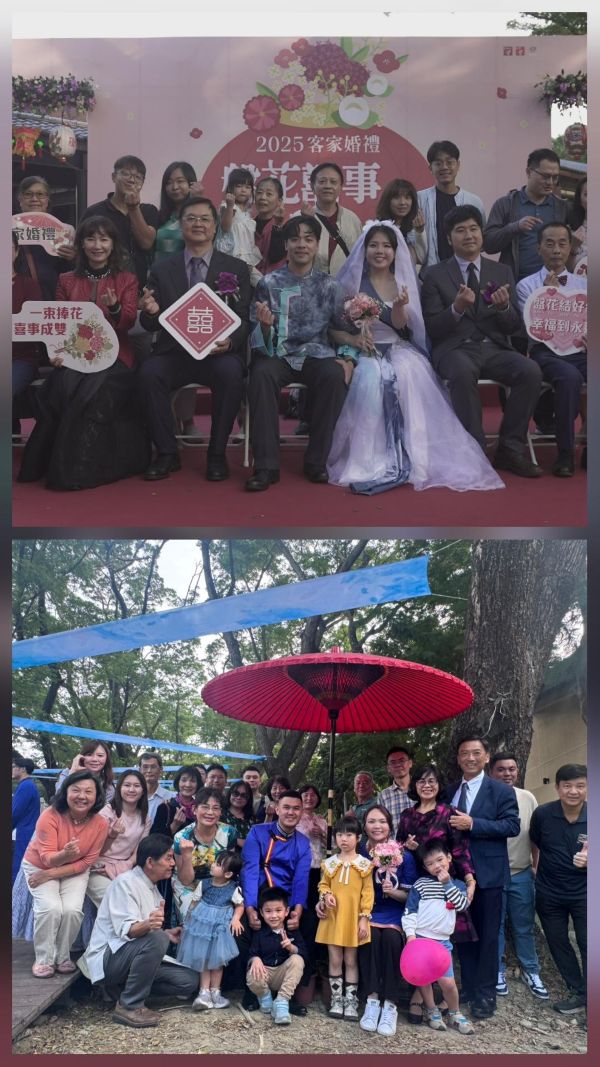 客家委員會由邱星崴副主任委員代表古秀妃主委擔任證婚人,邱副主委表示「結婚真的是不簡單的事」,感性分享自己 29 歲成家至今最深的體會是客家文化中的「伙房精神」,共下食飯、共下做事、共下渡細人仔。他說,雖然現代家庭不再有傳統的大伙房,但每對新人都在打造屬於自己的「小伙房」,共同生活、共同承擔,就是文化延續的力量,祝福新人在新的時代繼續傳承這份互助相惜的客家精神。