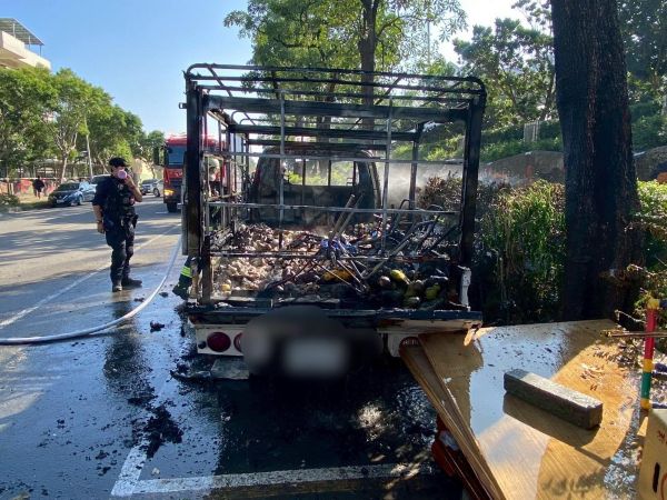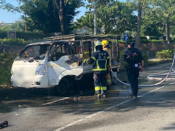 【記者吉雄世/高雄報導】小港分局於114年11月30日08時55分,獲報在小港區金府路117號旁,有汽車發生火燒車。員警到場發現,一輛停放於路旁之小貨車(發財車)起火燃燒,後續由消防隊到場撲滅火勢,初步檢視車內無人員,無人傷亡。另車主未在現場,起火原因初步研判為電線短路自燃,詳細原因仍待消防局火調科調查。