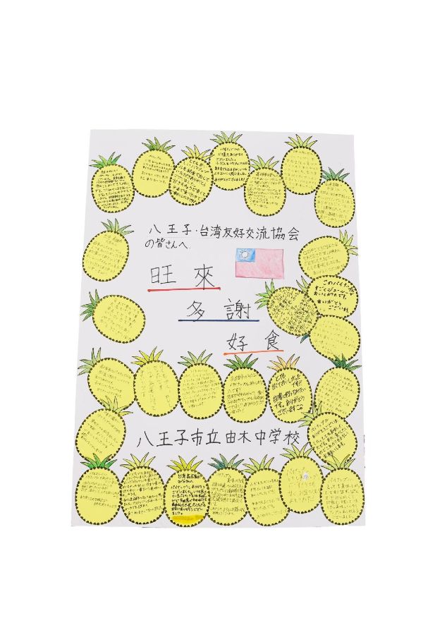 圖4-6::高雄食農在國際合作上,今年媒合高雄金鑽鳳梨供應八王子市38所國中、約1萬5千名學生午餐,並由對方製作教材介紹高雄產地特色,高雄亦製作鳳梨生產及分級影片,展現「從產地到餐桌」過程,使食農教育成為深化台日情誼的橋梁。