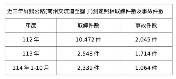 以爭議最多的屏鵝公路為例,南州至墾丁南灣約142公里設有15支測速桿,實際啟用執法的僅4支,約每35公里一支,與外界「每2、3公里一支」的印象明顯不符;同一期間,進入墾丁車流由約174萬輛成長至近193萬輛以上,觀光人潮並未被「嚇跑」,反而在車流增加下,相關路段固定測速取締件數及事故件數持續下降,顯示透過速度管理與工程、宣導配套,確實有助於壓低風險。