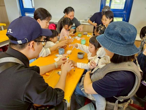 5、輕黏土磁鐵DIY-家長與孩子們分組創作。