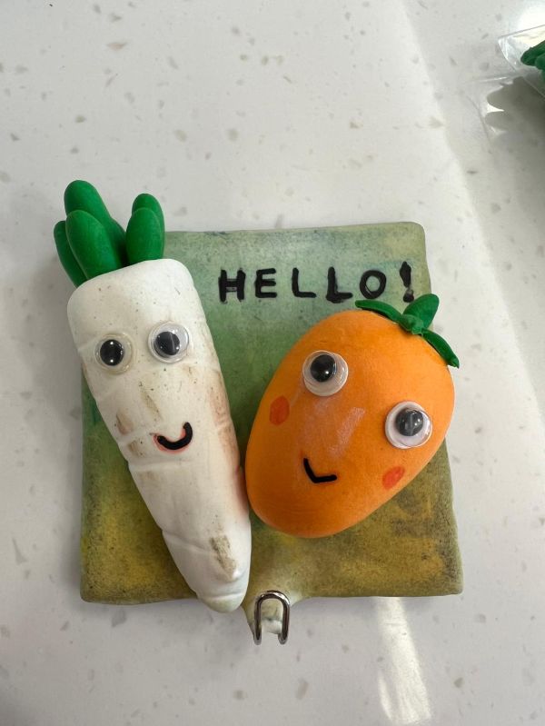 7、輕黏土磁鐵DIY-白玉蘿蔔與澄蜜香小番茄造型。