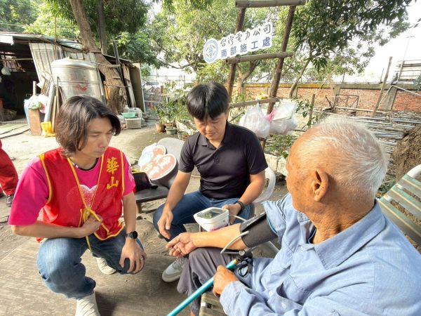 86歲的鄭阿公未婚獨居,依靠低收入補助度日,因為負擔不起房租,只能住在排水溝旁自己搭建的木造房屋。沒有家人,加上中風失能,生活十分困苦,華山開始服務後,站長及義工定期到宅關懷、提供日常物資,陪伴阿公走過孤單。適逢聖誕節前夕,華山邀請台電南部施工處一同到阿公家送暖,為讓阿公感受年節溫馨氣氛,林盛立副處長特地打扮成聖誕老人,將棉被、外套、衣物等物資,包裝成禮物送給阿公,助他度過寒冬,也祝阿公聖誕節快樂、身體康健呷百二。