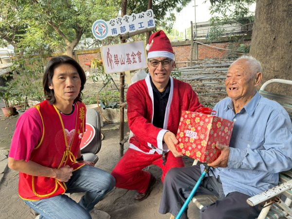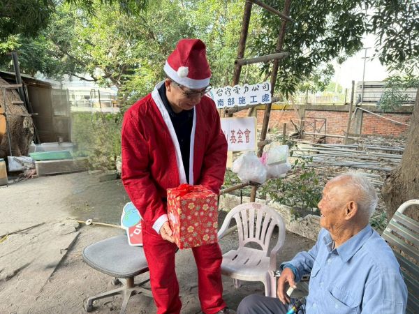 【記者吉雄世/高雄報導】入冬首波強冷空氣將至,氣溫驟降,社會角落有許多長輩獨自承受貧病飢寒之苦。為了讓弱勢長輩也能平安度過寒冬,華山基金會攜手台電南部施工處,於12月10日上午9點由林盛立副處長裝扮成聖誕老人,率領同仁前往獨居的鄭阿公家關懷慰問,並送上有保暖衣物的聖誕禮物。台電南部施工處秉持關懷在地、睦鄰友好的社會責任,長期支持華山基金會,今年再次發起,捐贈5萬元響應「愛老人 愛團圓」公益活動,期望能拋磚引玉,凝聚更多善的力量,送愛孤老。