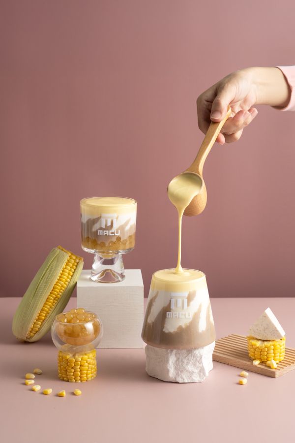 另一亮點則是全台獨有的「玉米圓」,以細緻包心 工法將玉米碎顆粒包覆於粉圓中,Q彈之間咬得到麻然甘甜 ,一一系列新品新新繹飲飲品的多 元可能,趣味滿滿,帶來前所未有的咬來體驗。