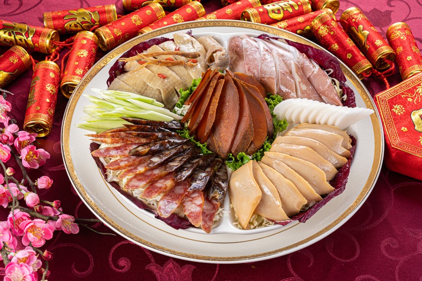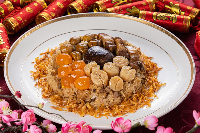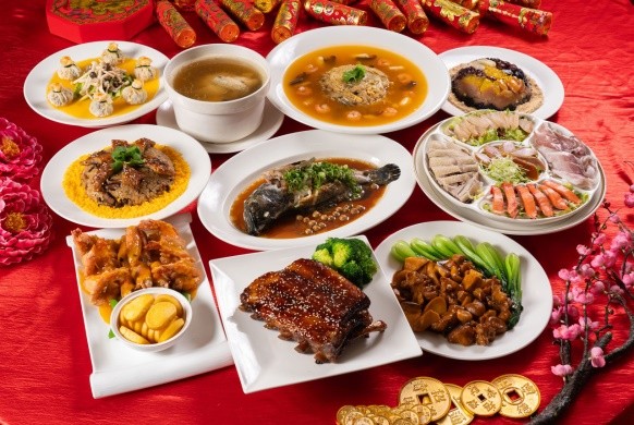 想要所有餐點一次到位的消費者,天悅飯店也貼心地推出年菜富貴套組,包括內含烏魚子、和風松葉蟹、麻香鮑片、冰卷、油雞在內的迎春五福盤,以及三鮮扣什錦羹、箱烤路易士排、湯海大蝦、樹果龍虎斑、瑤柱皇菇扒芽白、雙菇烏參黃金鮑、金沙鰻片米糕、山藥紅棗燉雞盅、鴛鴦甜八寶等各類名菜,並依照人數需求,推出6人份及10人份兩種選擇,售價分別為6,000元及12,000元。