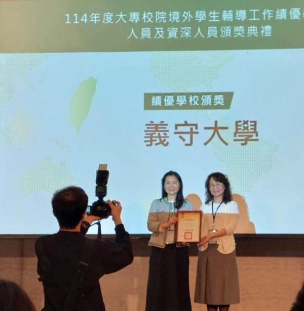 此外,僑務委員會同樣看見義守大學所展現的系統化能量,國際及兩岸事務處許鳳真組長獲選「僑生輔導績優人員」,統籌境外生事務、國際合作交流、學生國際移動力與留台就業輔導,協助僑生與國際學生在台灣看見長遠發展的可能。