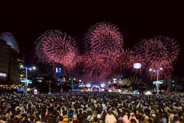 在眾人齊聲倒數後,隨即迎來240秒亞灣跨年煙火,象徵未來時刻都精彩動人,氣勢磅礡的花火在港都夜空畫下道道精彩,不同造型的絢麗花火照亮亞灣,搭配2025年曾到高雄開唱的BLACKPINK歌曲〈JUMP〉與TWICE的〈ONE SPARK〉,大家紛紛拿起手機紀錄感動的瞬間,幸福氛圍瀰漫四周,在新年的初始共享美好,期待新的一年好運連連。