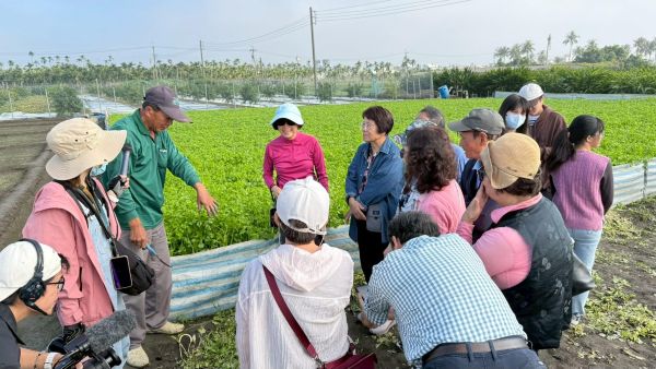 圖3:新園鄉芹菜管農友周定達於田間進行作物栽種與管理教學,分享在地農業經驗。