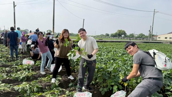 圖5:義守大學學生下田體驗毛豆採摘,透過實作學習食農教育,感受農業與土地的連結。
