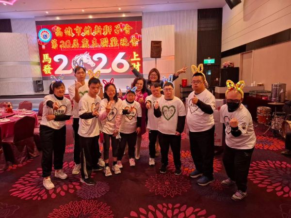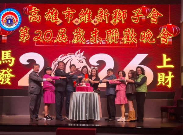 【記者吉雄世/高雄報導】2026年1月6日晚間,國際獅子會300E-3區高雄市維新獅子會第20屆歲末年終晚會於高雄市鳳山區和樂餐廳舉辦,該晚會由維新獅子會陳御斤會長攜手眾多獅友與社會賢達進行「寒冬送暖暨家園災後設備更新」公益捐贈活動,將社會服務金正式捐贈予社團法人高雄縣慈心慈善會,為弱勢家庭及災後重建注入即時而溫暖的公益力量。一襲紅裝,美麗動人的司儀-孔鈺婷秘書將會場程序運作得井然有序。唐氏症喜憨兒們在台上表演隨著音樂和鼓聲帶動起熱鬧氣氛。