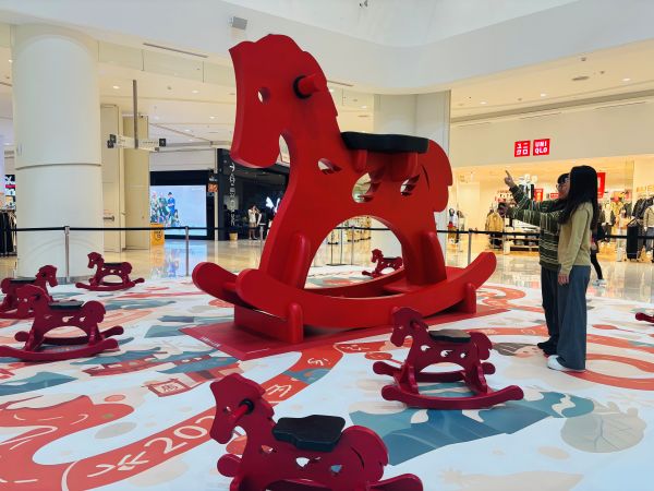這次新春檔期最大亮點之一,為全新登場的「瑞馬迎春打卡造景」,結合春節吉祥寓意與戶外空間,規劃五大必拍亮點,打造從白天到夜晚、一路迎福的走春路線。中央廣場的「吉祥搖搖馬」特別邀請國寶級剪紙藝術家「陳彥廷」教授合作,將象徵好運與活力的「馬」轉化為親子皆宜的藝術裝置,為新年揭開好運序幕;大道西一樓的「金獅賀春牆」以春聯與金獅營造濃厚年節儀式感;戶外街區則由600顆紅燈籠點亮燈海,成為春節夜拍亮點。此外,戶外街區北空橋下的「新春吉祥大對聯」以高掛空中的巨大對聯象徵新年一路順遂,南空橋下的「馬上有錢大春聯」以直白的祝賀語傳遞新年祝福,讓民眾在拍照的同時,把好運與財運一併帶回家。