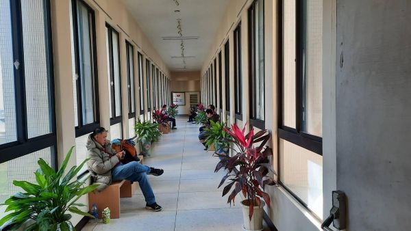 圖4.行政大樓一樓新設廊道成為陪考家長的最愛。