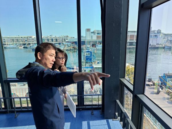 圖說4.蚵寮國小師生透過蚵子寮海洋教室觀景平台360°眺望漁港景觀。