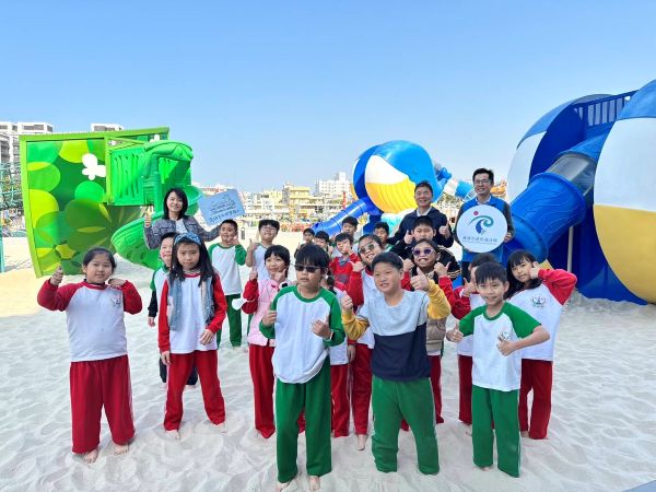 圖說6.蚵寮國小學生喜愛戶外沙池遊具,留下美好的戶外教學體驗。