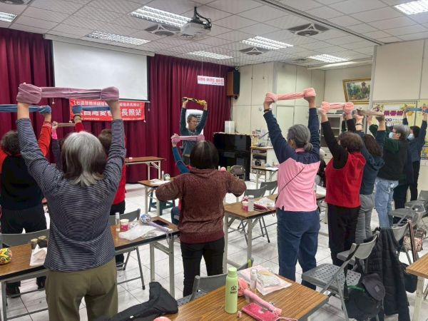 圖2:灣愛巷弄長照站長輩一起做居家毛巾健康操。