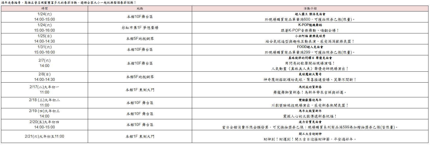 過年走春踏青,高雄左營店規劃豐富多元的春節活動,邀請全家大小一起玩樂整個春節假期!