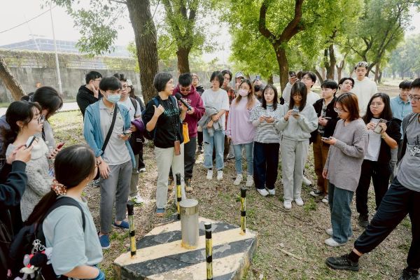 王敏玲帶學生走進「保護」後勁居民的工業綠帶,地上插著許多圓柱狀的監測孔,她分享相比中油高高的煙囪,三四米高的圍牆和僅僅60公尺的工業綠帶,「居民在家就能看到冒火的煙囪了」。她補充,當時汙染已深入土壤和地下水,整治過程也可能造成額外的汙染,例如土壤雖然可以透過熱脫附的技術淨化,卻也有讓汙染回到空氣當中的風險。