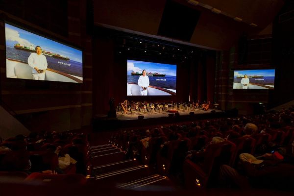 圖說四、五:在音樂會開始之前,現場也特別播放了兩支影片,分別是《海洋之子 十年續航》影片,與現場觀眾一起回顧長榮集團創辦人張榮發總裁波瀾壯闊的一生,以及《所信所行 善不止息》影片,與大家分享張榮發基金會近期訪問了受張創辦人幫助與鼓勵而實現夢想的兩位受助者人生故事,現場感人的氛圍,讓許多觀眾都忍不住感動落淚。