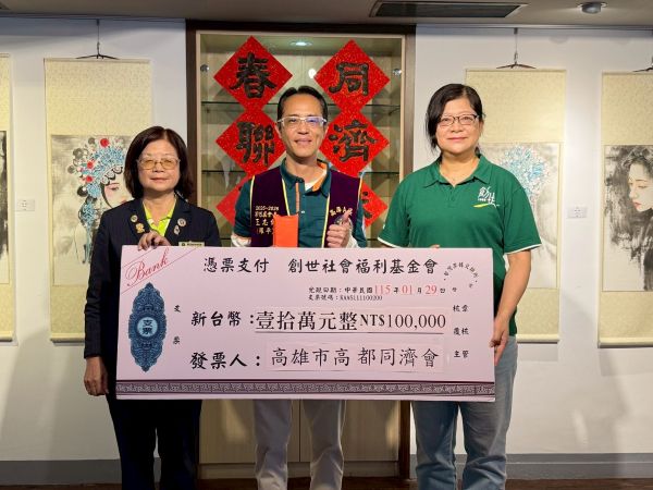 【記者吉雄世/高雄報導】為支持創世基金會「植物人常年服務暨第36屆寒士吃飽30」經費,創世基金會與高都同濟會於1月29日上午10時30分,假高雄市中國書畫學會會館共同舉辦「書法義賣助送禮到家」公益行動。高都同濟會除捐助新台幣10萬元支持服務經費外,並號召會友透過書法義賣響應,以實際行動陪伴弱勢家庭溫暖過年。
