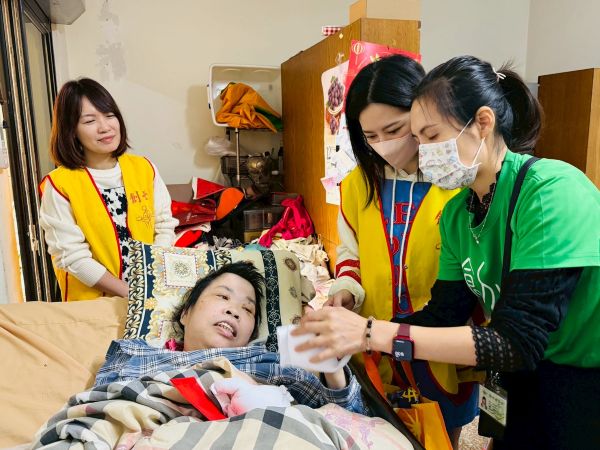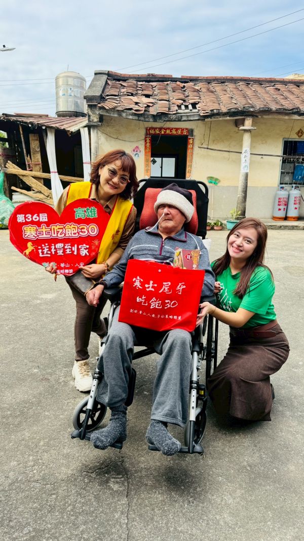 【記者吉雄世/高雄報導】即將迎接長達9天的農曆春節,人人準備溫馨團聚,但對老弱孤苦的清寒植物人家庭、寒士、街友、單親媽媽及獨居長輩,春節卻更顯漫長艱苦;創世、華山、人安策略聯盟關懷殘、老、窮,辦理第36屆「寒士吃飽30」送禮到家活動,高雄分會於2月2日集結善心馬力全開、送愛到家。連續多年參與的愛心貴賓高雄郵局尤素珍局長、過期空姐KIKO、高雄市慈幼慈善會…等多位貴賓,齊心將年禮及紅包親送給植物人家屬,並貼上吉祥喜氣的春聯,傳遞社會真摯的關懷與祝福。