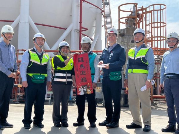 羅達生副市長並向現場作業的勞工朋友致贈春聯拜早年,勉勵業者與勞工齊心協力,透過全員參與的方式,來強化製程安全管理。羅達生指出,市府近年與中央共同攜手,針對林園產業園區石化廠推動智慧石化永續發展計畫,期望藉由數位化與低碳轉型,帶動高雄石化產業邁向安全永續的高值未來。