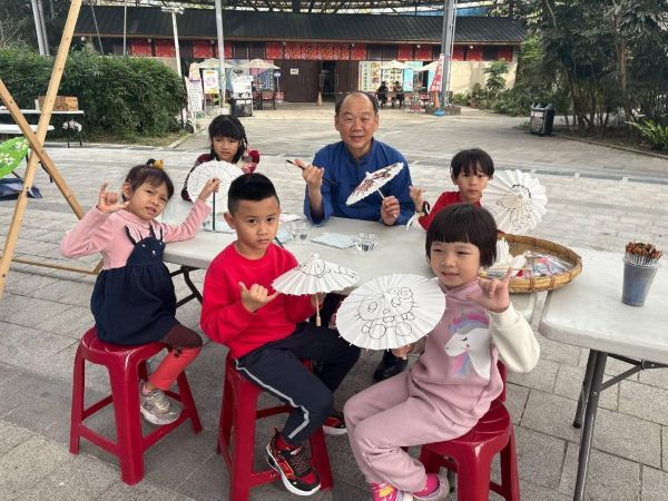 圖3: 2026六堆新年福,客發中心謝勝信主任與小朋友彩繪紙傘
