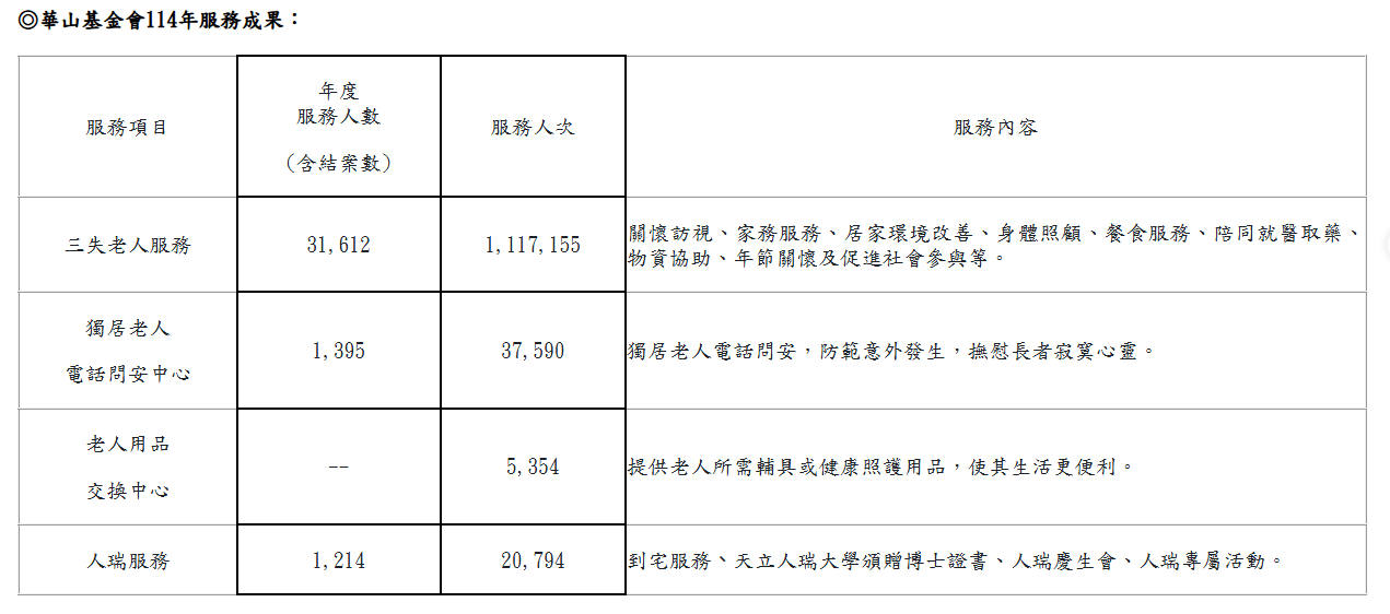 華山基金會連續23年發起「愛老人 愛團圓」年菜送孤老公益活動,讓弱勢長輩在除夕前收到愛心年菜,過年期間不挨餓。然而物價飆漲、天災頻傳,人人荷包緊縮,距離農曆新年剩不到2週,愛心年菜募集尚有4成缺口,時間緊迫,誠摯邀請社會大眾支持,年菜每份1,000元,讓孤老餐桌上也有豐盛的年夜飯,感受愛與關懷。愛心專線:(07)345-2649徐站長。郵政劃撥帳號:42182258,戶名:華山基金會(通訊欄請備註:115春節左營1站)。捐款皆開立正式收據及可抵稅,歡迎索取信用卡授權書或諮詢其他捐款方式。(勸募字號:115愛老人衛部救字第1141364538號,勸募期間:115年1/1至115/12/31)【本會按月將專案款項匯入勸募指定帳號】