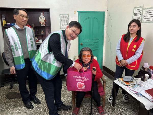 【記者吉雄世/高雄報導】農曆春節將至,對獨居及行動不便的長輩而言,年節期間更顯孤單,年夜飯往往是一年中最重要、卻也最容易感傷的一餐。高雄銀行認同華山基金會服務,共同關心弱勢孤老,已持續16年,今年捐助愛心年菜共200份,並於2月6日上午9點30分在華山服務的符奶奶家,由張代理總經理榮泰先生帶領員工,帶著愛心年菜及全新棉被、春聯,送給奶奶溫暖過好年。