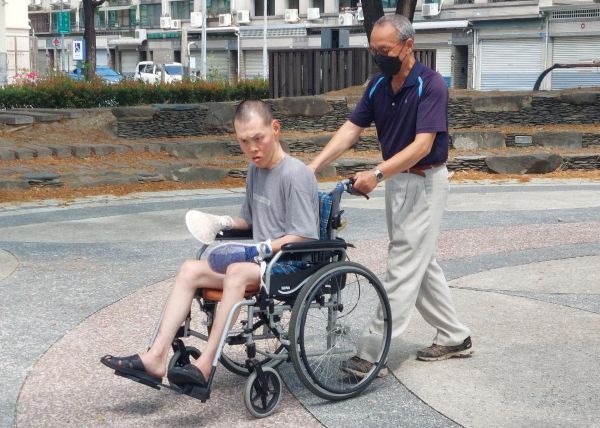 圖2: 關懷達人前來無障礙之家探望憨兒,一起在戶外散步,享受午後暖陽,心中滿是溫馨。