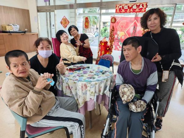 圖5: 關懷達人們相約於過年前夕探望憨兒們,大夥在無障礙之家團聚互相拜年,感受滿滿溫情。