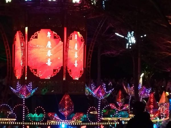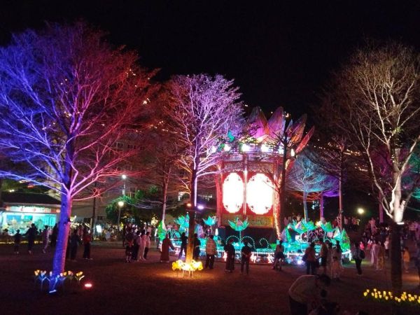 圖說10:夜色中,繽紛燈光點亮園區,蓮花燈台璀璨奪目,人潮悠然穿梭,一場溫馨而歡樂的光影盛會。